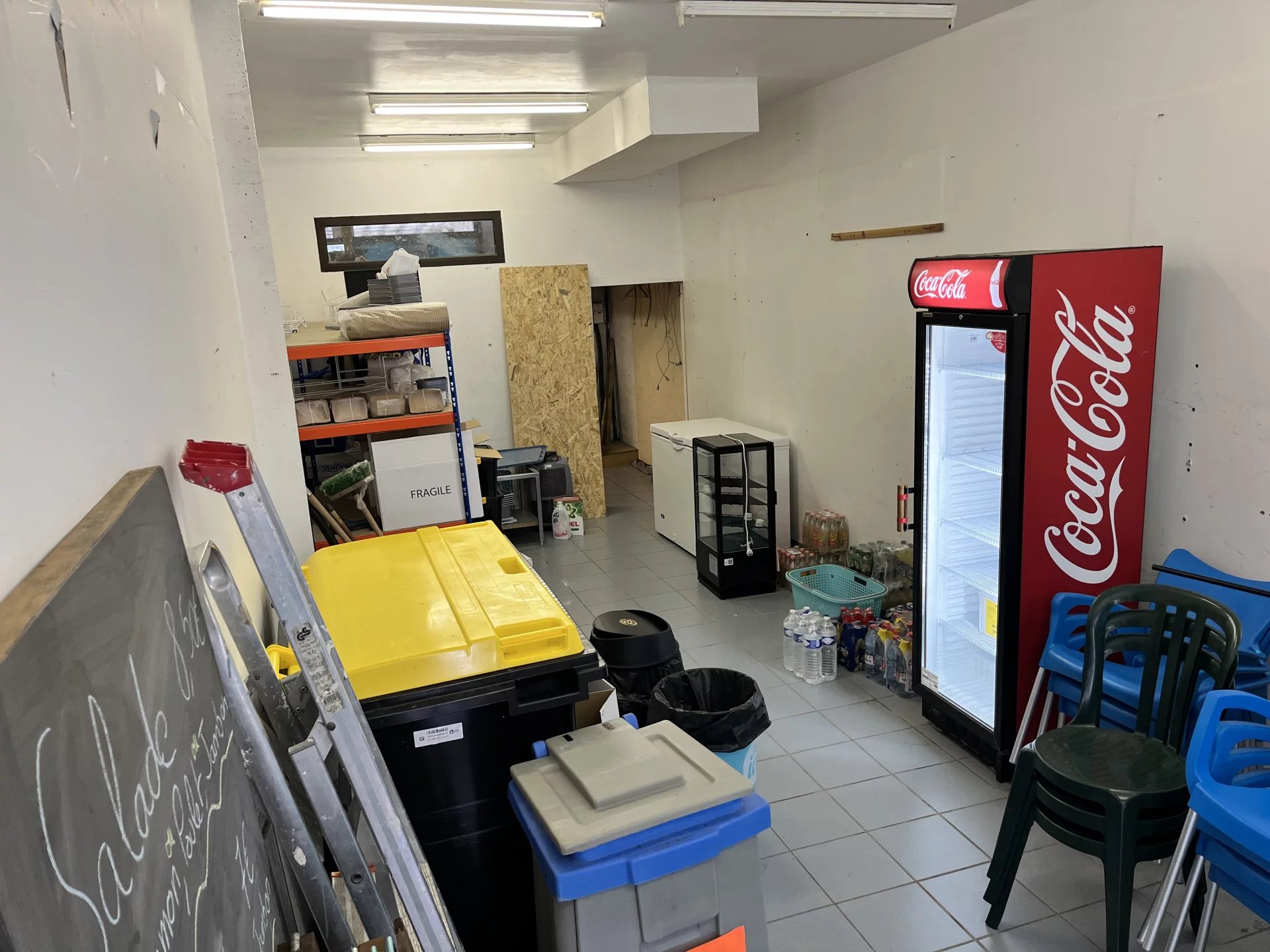 • Local 1 : entièrement équipé pour de la vente à emporter (glaces, pizzas, saladette, hotte, plonge, WC, etc.)