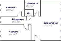 1 appartement T3 de 50 m² Loi Carrez